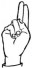 На ћирилици написано ВУКОСАВ РУЖИЋ састоји се из 12 слова [?]. Исписано ћириличном једноручном азбуком за глувонеме: